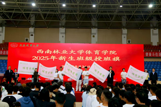 随后,体育系主任宋晶涛作专业介绍、专业规划指导,公司团委书记艾陟邦、学工负责人高新平作了党团学工作介绍。仪式上还举行了庄重而富有意义的新生班级授旗仪式,一面面旗帜承载着集体的荣誉与梦想,激发了同学们的集体归属感和奋斗热情。