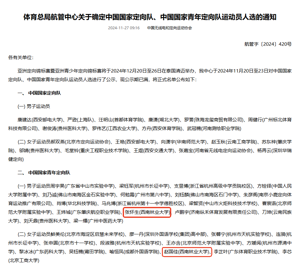 2024年亚洲定向锦标赛、亚洲青少年定向锦标赛将于2024年12月20日至26日在泰国清迈举行,为做好2024年亚洲定向锦标赛暨亚洲青少年定向锦标赛参赛工作,体育总局航管中心启动中国国家定向队、中国国家青年定向队运动员选拔工作。经过选拔,公司定向运动队2名员工成功入选中国国家青年定向队!